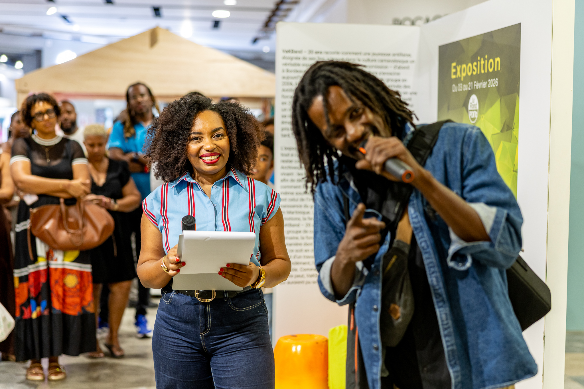 Edyna NDEBANI présente le vernissage de l’exposition 20 ans VaKband, Rond-Point des Arts – Martinique – crédit Fabien L’HEUREUX